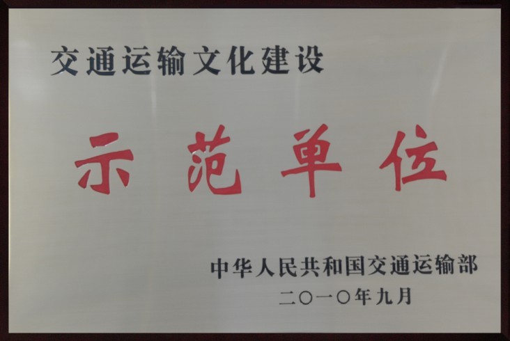 近日,我司接交通運輸部交政法發(fā)[2010]476號文《關于命名第二批交通運輸文化建設示范單位的決定》,公司被評為“交通運輸文化建設示范單位”,此次評選江蘇省僅兩家單位入選。我司將珍惜榮譽、再接再厲、充分發(fā)揮示范帶頭作用,為開展交通運輸文化建設,發(fā)展現(xiàn)代交通運輸業(yè)再立新功,再創(chuàng)佳績。