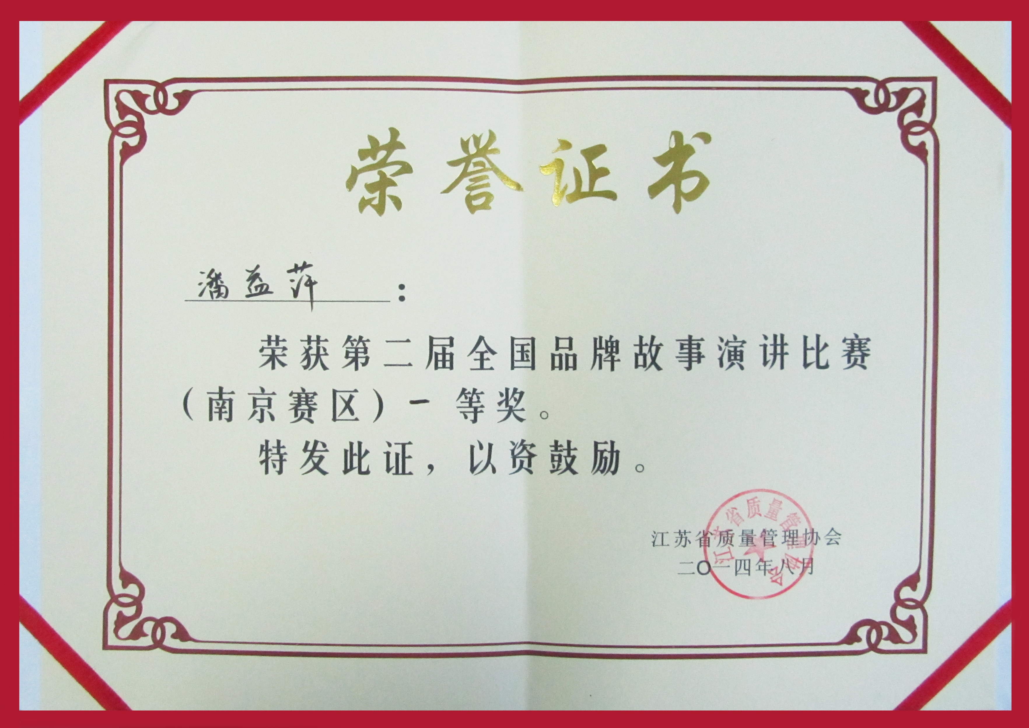 我司喜獲第二屆全國品牌故事演講比賽(南京賽區)一等獎