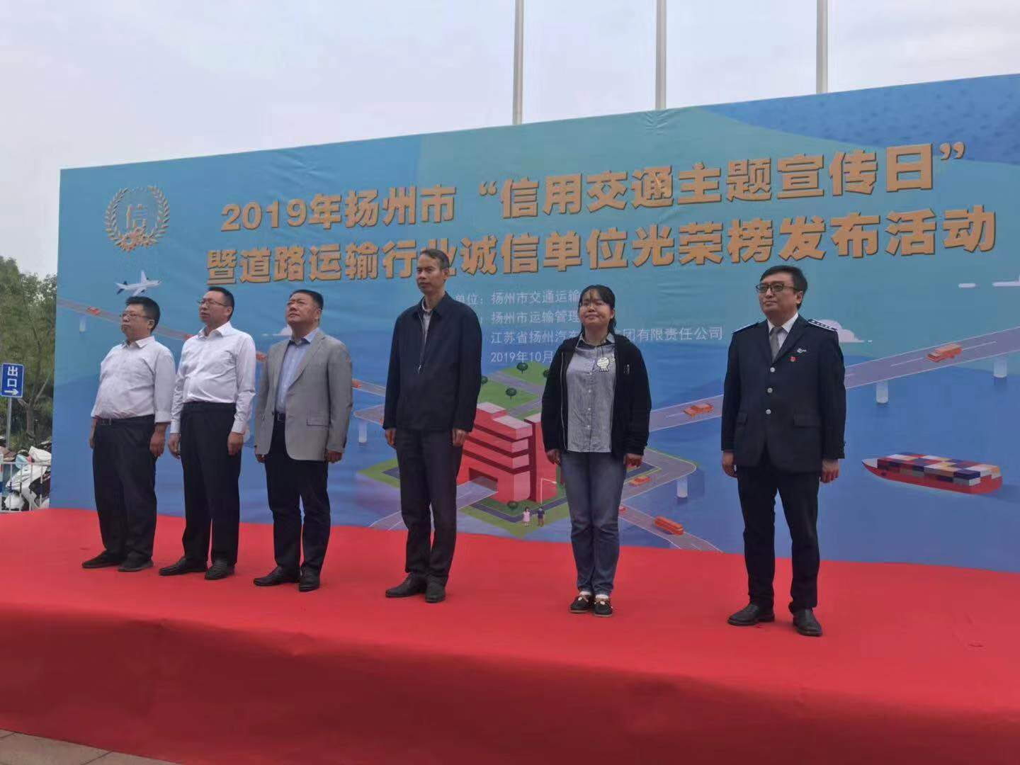 為加強信用信息管理,樹立交通運輸行業(yè)誠信標桿,10月11日下午2:30,揚州市“信用交通主題宣傳日”暨道路運輸行業(yè)誠信單位光榮榜發(fā)布活動在西部客運樞紐汽車站站前廣場舉行。