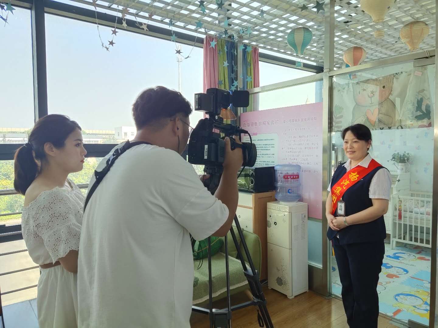 此次采訪主要以文明驛站——愛(ài)心母嬰室為主題,采訪過(guò)程中揚(yáng)州站負(fù)責(zé)母嬰室服務(wù)的班長(zhǎng)尹海霞對(duì)母嬰室的功能及服務(wù)進(jìn)行了詳細(xì)的解說(shuō)。