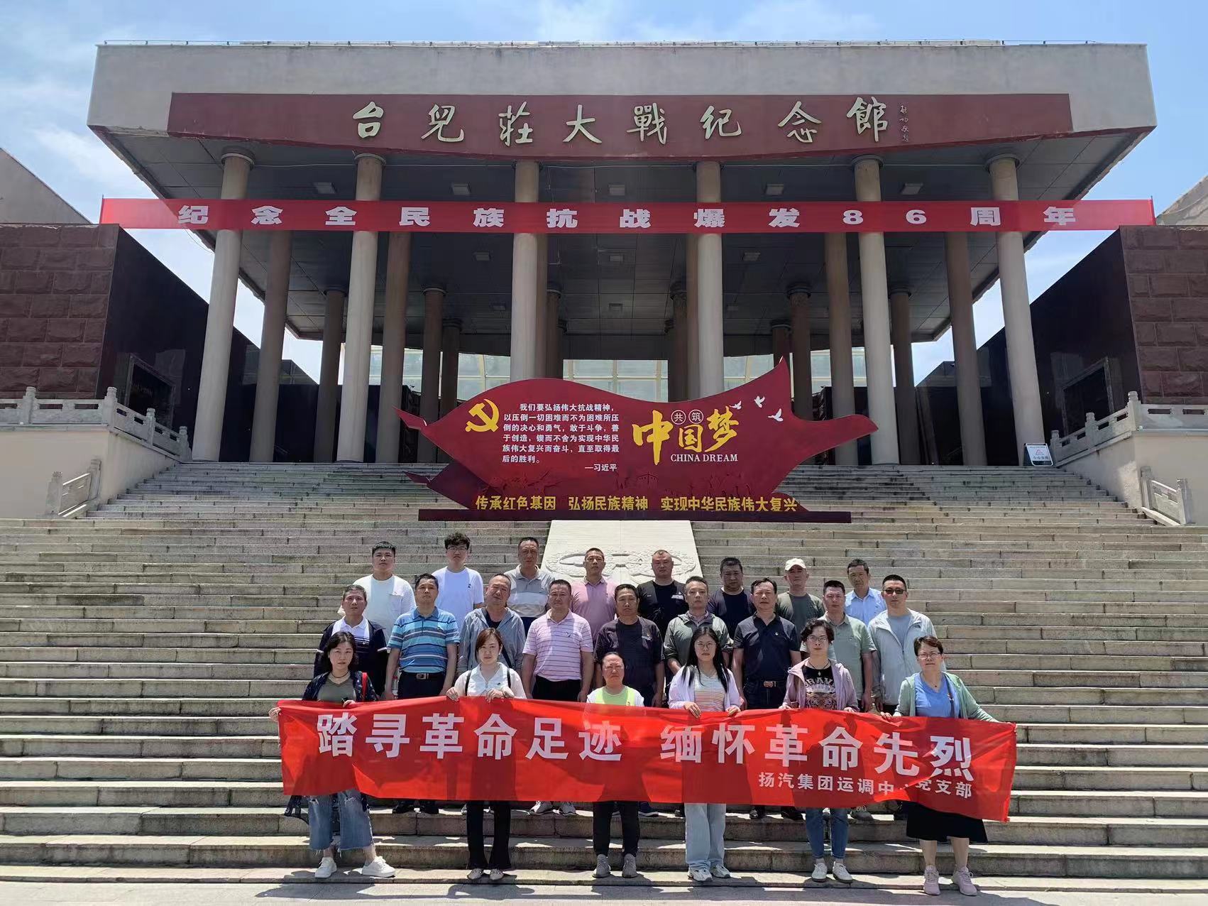 在慶祝建黨102周年暨紀念“七七事變”86周年之際,為緬懷革命先烈,繼承和發揚黨的光榮傳統和優良作風,7月7日,揚汽集團運調中心黨支部開展“踏尋革命足跡,緬懷革命先烈”紅色之旅主題黨日活動,組織全體在崗黨員、積極分子和部分優秀員工前往臺兒莊大戰紀念館,實地接受愛國主義教育和革命傳統教育。